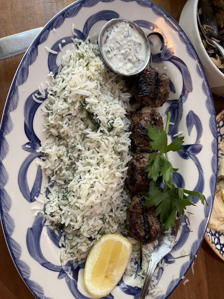 food: everything was yummy and had nice flavors, the chicken kefta was a bit dry for me but everything else i would order again. seemed pretty authentic. the main standouts that i would get again next visit are hot honey halloumi, short ribs, onion dip, and the pistachio froyo service: the service was immaculate, really liked our waiter and he comped our desserts without us saying anything because the kitchen messed up and missed some of our orders ambiance: really nice vibe, great for dinner and chats, apparently very Cali, did a birthday dinner here and couldn’t ask for better atmosphere