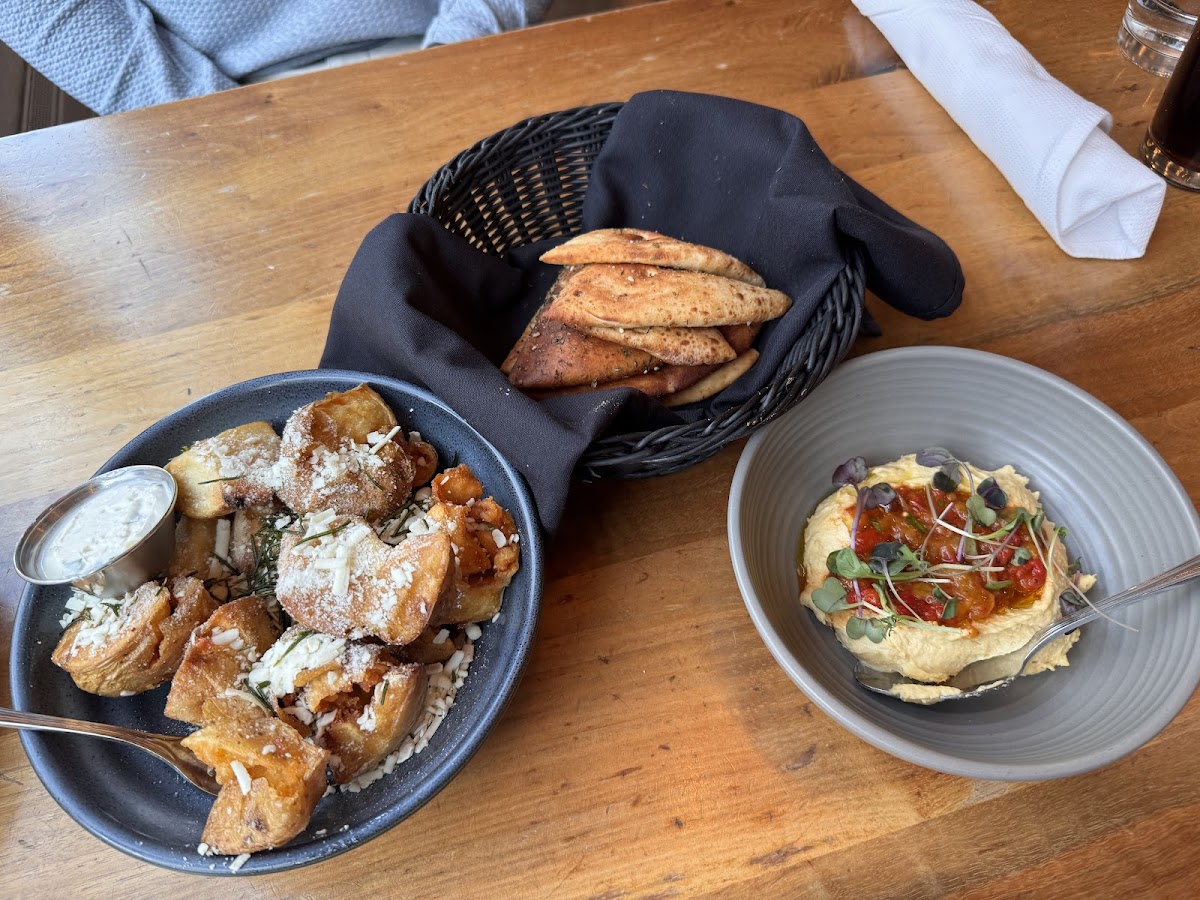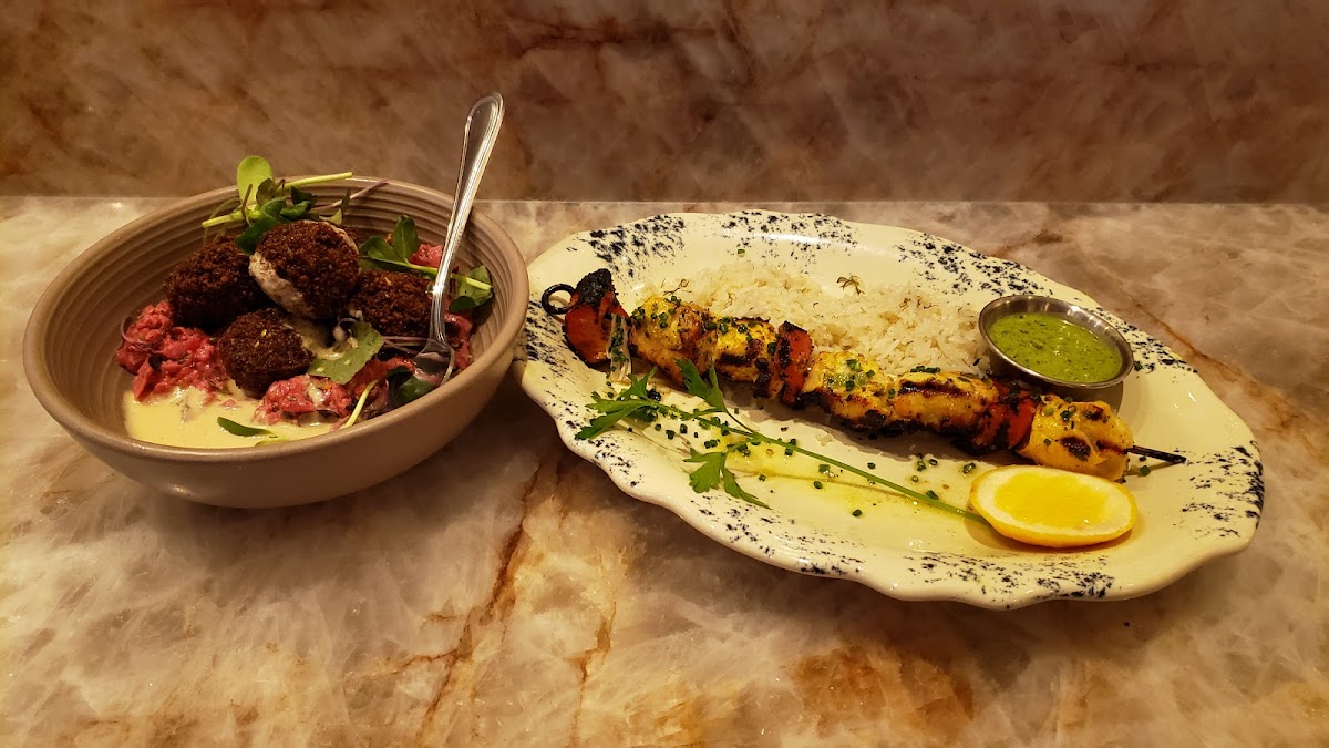 I was very impressed with the staff. I had a reservation but called to say I’d be arriving much later than expected—they were kind enough to still seat us as long as we finished by a certain time, which I appreciated. The ambiance was cozy and perfect for a date night or girls’ night out. While it shares a lobby with a hotel, you hardly notice unless you’re near that side. The falafel was probably the best I’ve ever had—crispy, flavorful, and perfectly done. The complimentary naan was soft and warm, pairing beautifully with the hummus and almond garlic spread. I’d definitely come back to order the same dishes and try a new hummus next time.
