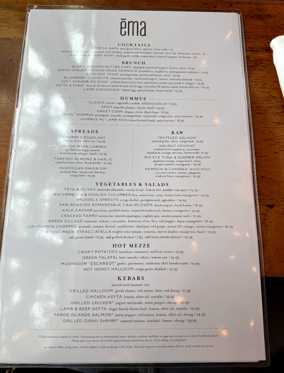 Ema - Chicago Menu